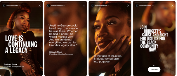 AdCouncil’s Love Has No Labels has been long been an advocate of love, this integrated campaign made them a force for good. Awareness is no longer enough, action is essential today. In partnership with the George Floyd Memorial Foundation, we told the story of Bridgett Floyd and her brother — anchoring both the campaign and the story in familiar and familial love. As a first for this 15 year agency partnership, it was broadcasted on Hulu and Prime, alongside other stories for the Asian American and LGBTQ+ ccommunity.