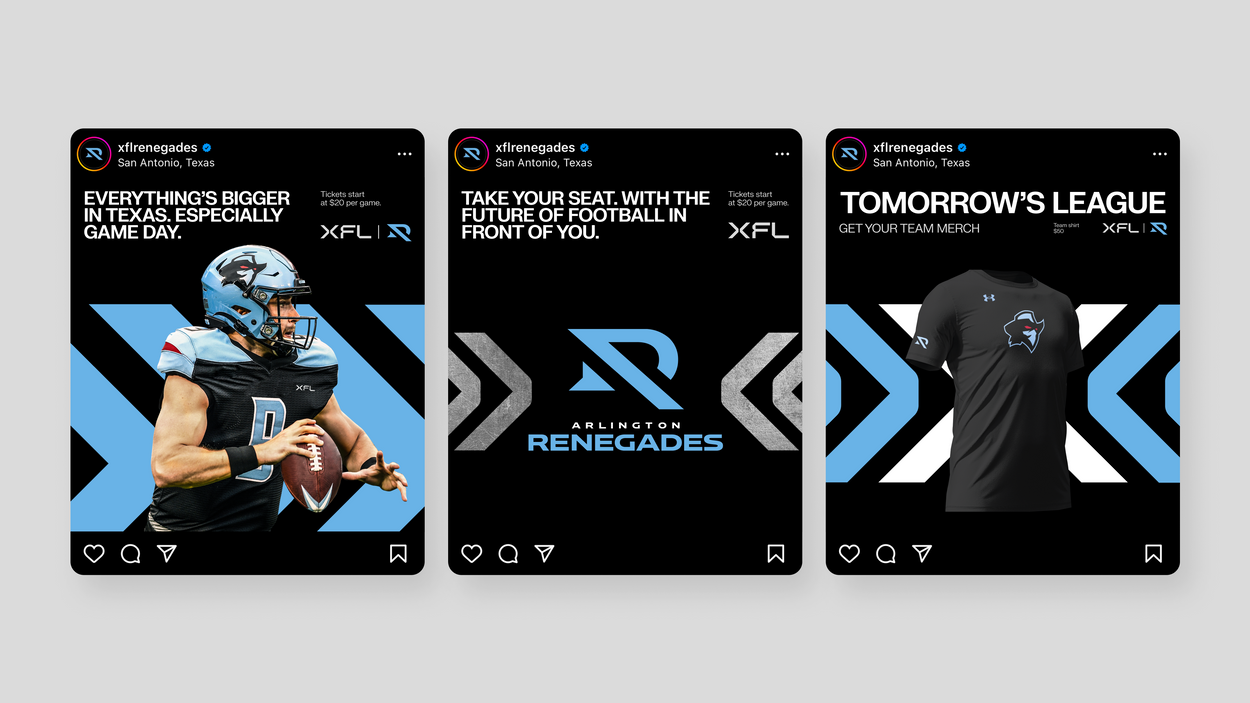 The XFL began as an idea for optimism and purpose. It became a purposeful brand design and launch with a unique identity for the league and each of the 8 professional teams, their players and social channels. Uniform design, still photos and aesthetics, content calendars and social posts, interview questions, app UX and UI, scripts and backstories for team and league narrative — no stone was left unturned in the year leading up from kick-off to the first ever XFL Championship game.